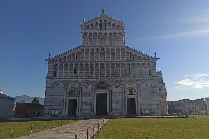 • Your journey begins in Pisa, where you will visit the legendary Piazza dei Miracoli. Marvel at the stunning white marble monuments set against vibrant green lawns, and take time to admire the world-famous Leaning Tower, the magnificent Cathedral (Duomo), and the Baptistery.