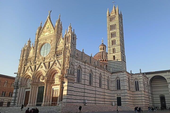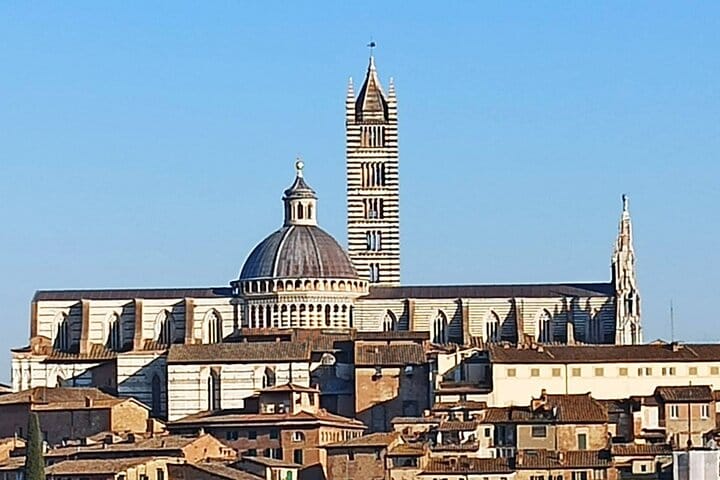 Immerse yourself in the enchanting beauty of the Tuscan hills on this unforgettable day trip. Start your journey with a scenic drive through vineyards, olive groves, and iconic cypress trees before arriving in Siena, a UNESCO World Heritage Site. Explore its stunning medieval streets, marvel at the majestic Piazza del Campo, and soak in the history of this city, famous for its legendary Palio horse race.