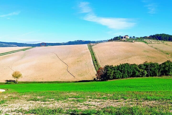 Travel through the rolling Tuscan hills, adorned with vineyards and olive groves. Volterra Exploration and Authentic Tuscan Charm