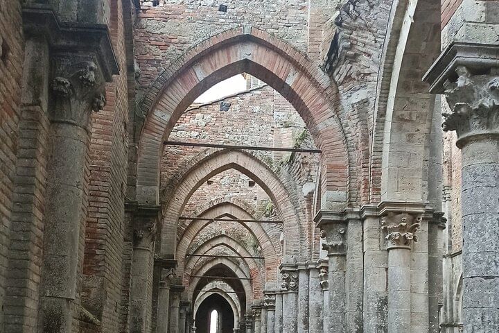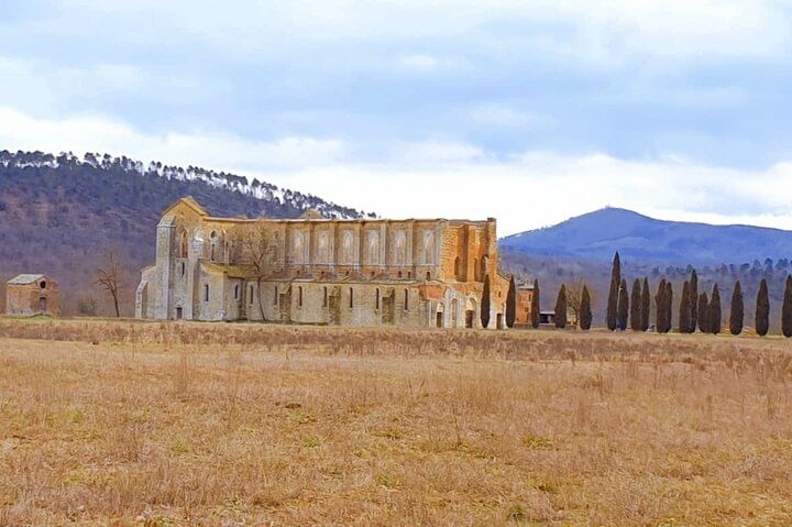• Embark on a morning adventure to the stunning Abbey of San Galgano. Uncover the true story behind the "Sword in the Stone" and the intriguing tale of Galgano Guidotti. Continue your journey to the imposing Monteriggioni Castle, where medieval charm and history converge.